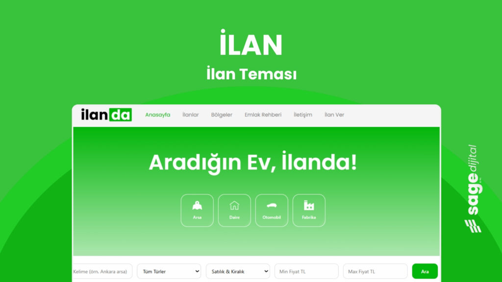 Modern ilan ve emlak çözümleri için geliştirilen İLAN WordPress teması, arsa, daire, otomobil ve fabrika gibi birçok kategoriye uygun ilan yapısıyla öne çıkıyor. Sade tasarımı ve hızlı altyapısı ile ilan yayınlamak hiç bu kadar kolay olmamıştı!