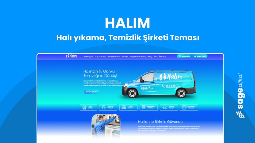 HALIM, başta halı yıkama olmak üzere koltuk yıkama, perde temizliği, yorgan yıkama gibi hizmetler sunan temizlik firmaları için özel olarak tasarlanmış profesyonel bir WordPress temasıdır. Sipariş takip modülü, mobil uyumlu sabit iletişim kutuları ve yüksek SEO performansıyla firmanızı dijitalde öne taşır.